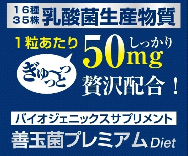 |    | 【乳酸菌生産物質】で体内の善玉菌をサポート! 善玉菌の餌となるオリゴとアカシアや食物繊維豊富な難消化デキストリンもプラス!!・いつまでも健康的な体形を維持したい方